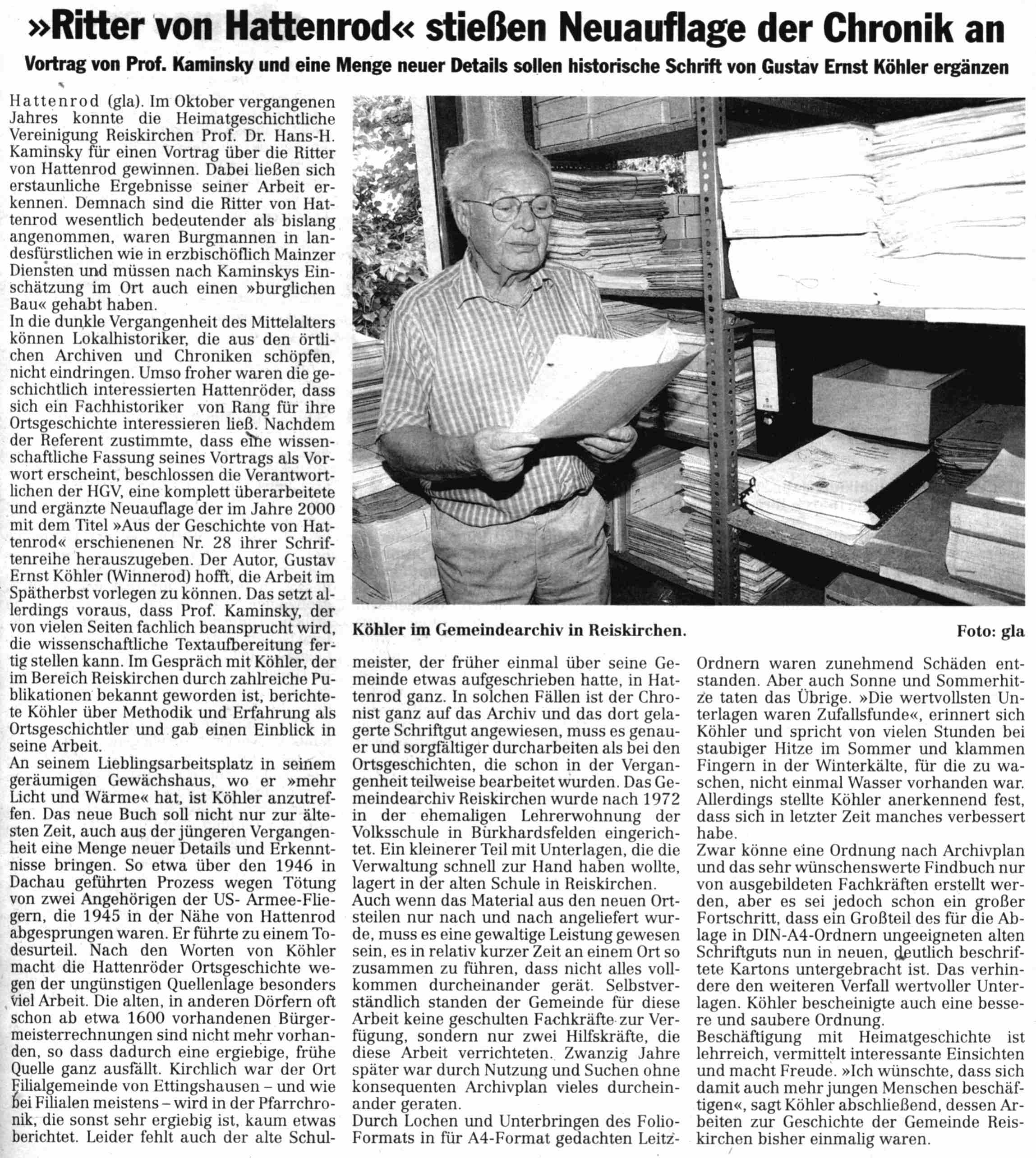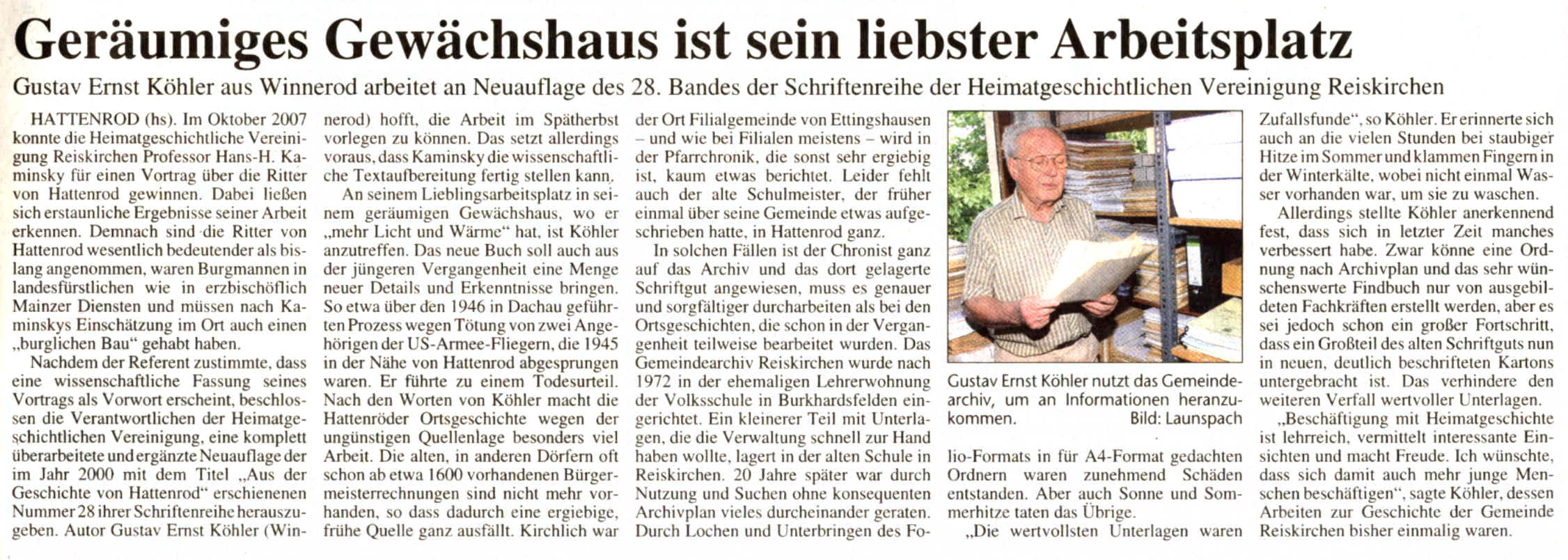 Der Heimatgeschichte verschrieben - Ehrenvorsitzender der HGV Reiskirchen wird heute 80 Jahre alt |