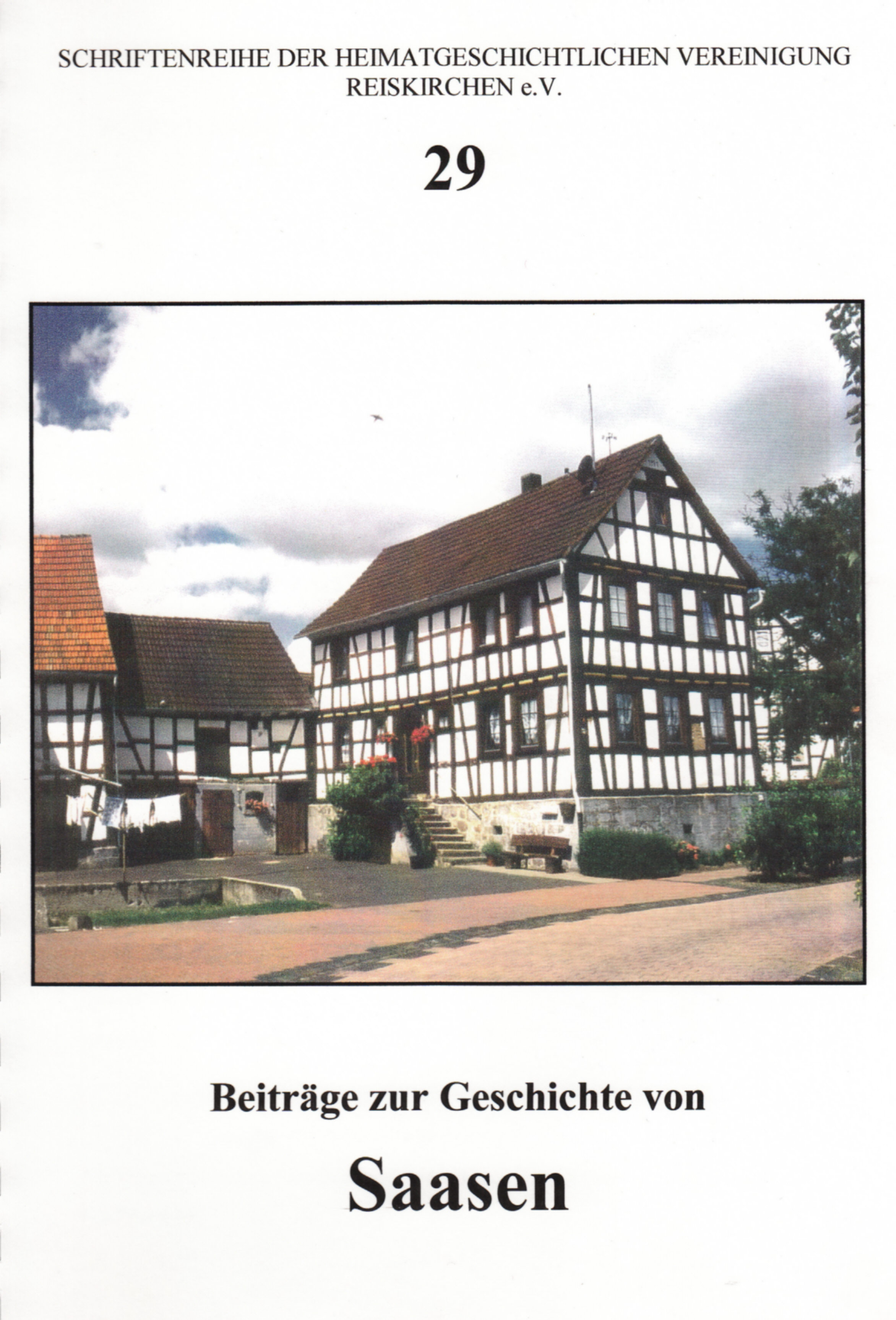 Autor: Köhler, Gustav Ernst Titel: Beiträge zur Geschichte von Saasen Erscheinungsjahr: 2000 Umfang: Ringbindung, 31 Seiten, illustriert mit zahlreichen Bildern, Ortsplänen und Grafiken, Inhaltsangabe: Der Verfasser liefert zu der Saaser Ortsgeschichte, die der schwierigen Quellen-lage wegen erst in 2 bis 3 Jahren einiger-maßen vollständig ermittelt sein wird, drei Kapitel: Die Auflistung der Auswanderer im 19.Jahrhundert, die Flurnamen nach dem Gemeindebrouillon von 1855 und den Beitrag "Die beiden Kirchen von Saasen", in welchem Klarheit über die ungewöhnliche Kirchenge-schichte des Ortes hergestellt wird. Titelbild, Satz und Gestaltung: Kurt Herber |