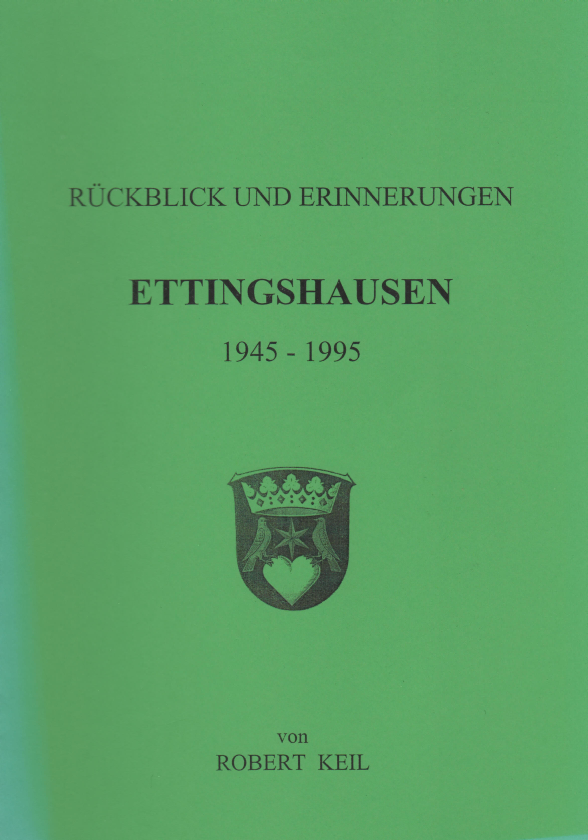 Autor: Keil, Robert Titel: Rückblick und Erinnerungen, Ettingshausen, 1945 -1995 Erscheinungsjahr: 1996 Umfang: Ringbindung, 32 Seiten Inhaltsangabe: Ortsgeschichte ab 1945, berichtet von einem Zeitzeugen und langjährigen Bürgermeister des Dorfes. Mit Beiträgen von Alice Brunk und Reinhold Erb. Ortspläne. |